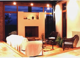 La planta se resuelve con vos volúmenes rectangulares típicos de las casas de campo articulados a través de un volúmen central girado que genera una doble altura a modo de mangruyo. Aprovechando las vistas de la planta alta se ubicó el dormitorio principal en suite.