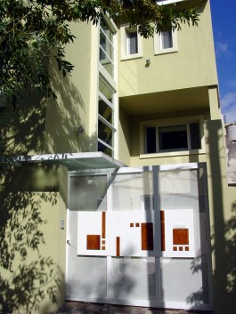 Proyectamos una planta baja de servicios y generamos un acceso descubierto lo que permitió optimizar las vistas y el asoleamiento de la vivienda. En la planta del 1er. piso se desarrolla un estar con cocina y comedor unificados. Cuenta con una terraza que balconea a un patio trasero . La planta del 2do. piso contiene dos dormitorios, un baño y un dormitorio principal en suite.
