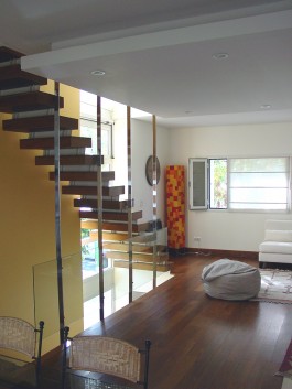 En un terreno de dimensiones ajustadas debimos resolver una vivienda para una familia con tres hijos adolescentes y mucha vida social