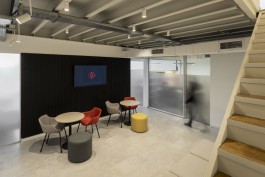 El estudio 2PS proyecto la resolucion de estas oficinas y confio en CDA para su desarrollo y construccion. Se decidió crear dos paquetes programáticos y asignarle una planta a cada uno. La planta baja cuenta con la recepción, que está rodeada por despachos personales y salas de reuniones. La planta alta incluye una sala de grabación para realizar streaming y espacios de trabajo para la redacción.