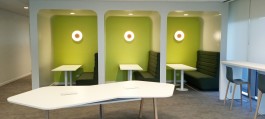 A partir de la división de la compañía GSK Biopharma necesito un nuevo site para sus oficinas. En un contexto mundial donde se repiensan las formas de trabajo a causa de una pandemia y al avance de la tecnología, el programa no solo debe contener los espacios de trabajo que ya conocemos, también había que incorporar salas para video llamadas individuales, puestos de trabajo flexibles y espacios de encuentro al aire libre.