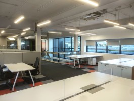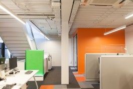 Se han desarrollado un sector gerencial con un despacho privado y una sala de reuniones corporativa y un área operativa desarrollada en un open plan con salas operativas, office y áreas de apoyatura. Se incorporó al proyecto una nueva circulación que conecta las oficinas con los sectores de producción de la planta industrial.