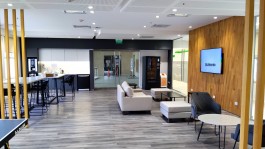 Salas de reunión grandes, medianas e individuales |Office |Puestos de trabajo | Espacios de guardado |Terraza con deck y pérgolas para livings